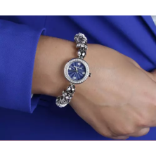 Mostrador em madre perola, Movimento quartzo, Aço ionizado prateado, Resistência à água 3bar/30m, Bracelete em aço personalizável